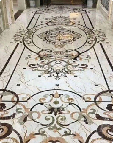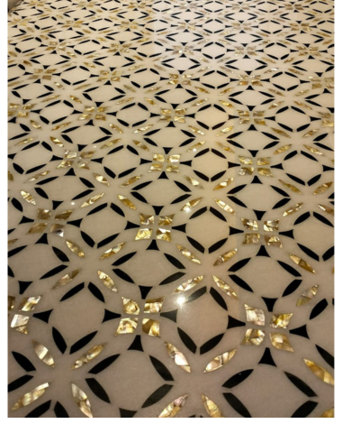 Our floor inlay works are crafted to create elegant, durable, and visually harmonious surfaces. Using high-quality marble combined with Mother of Pearl and fine stone inlay, we design seamless geometric and custom patterns that enhance the sense of space and luxury. Each floor is meticulously hand-finished to ensure smoothness, symmetry, and long-lasting brilliance, making it ideal for residences, hotels, prayer halls, corridors, and feature flooring.