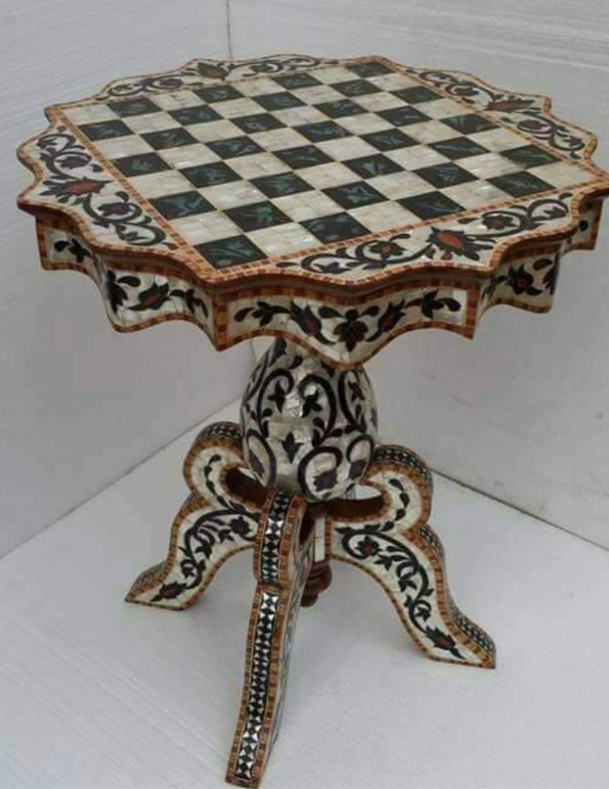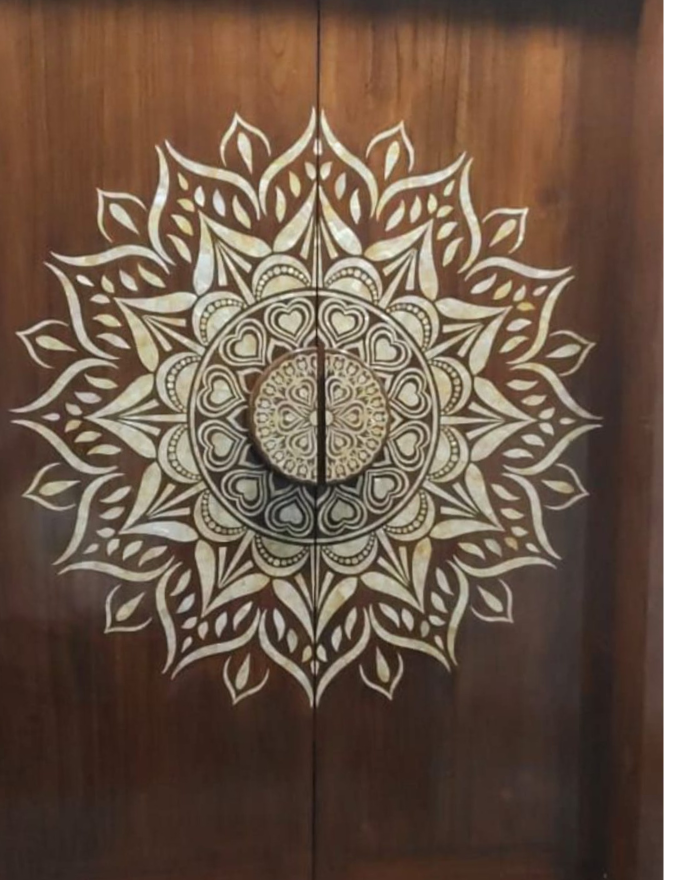 Our Mother of Pearl wood inlay work blends natural iridescence with fine woodworking craftsmanship. Delicately hand-cut Mother of Pearl pieces are carefully embedded into premium wood surfaces, creating elegant patterns that reflect depth, contrast, and timeless beauty. This technique enhances furniture, panels, doors, and decorative elements with a refined, luxurious finish—where traditional artistry meets contemporary design.
