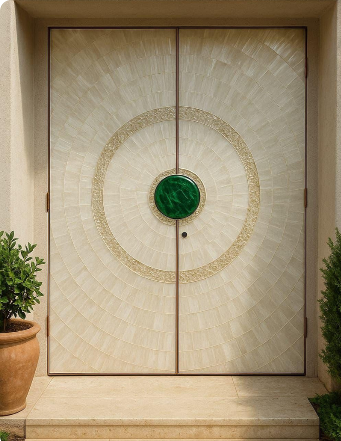 Our selenite doors are crafted to create a striking blend of elegance, light, and luxury. Known for its natural translucency, selenite allows soft illumination to pass through, creating a calm and sophisticated visual effect. Precision-cut stone panels are carefully assembled and finished to ensure strength, symmetry, and seamless detailing, making selenite doors an exceptional choice for premium interiors and statement entrances.