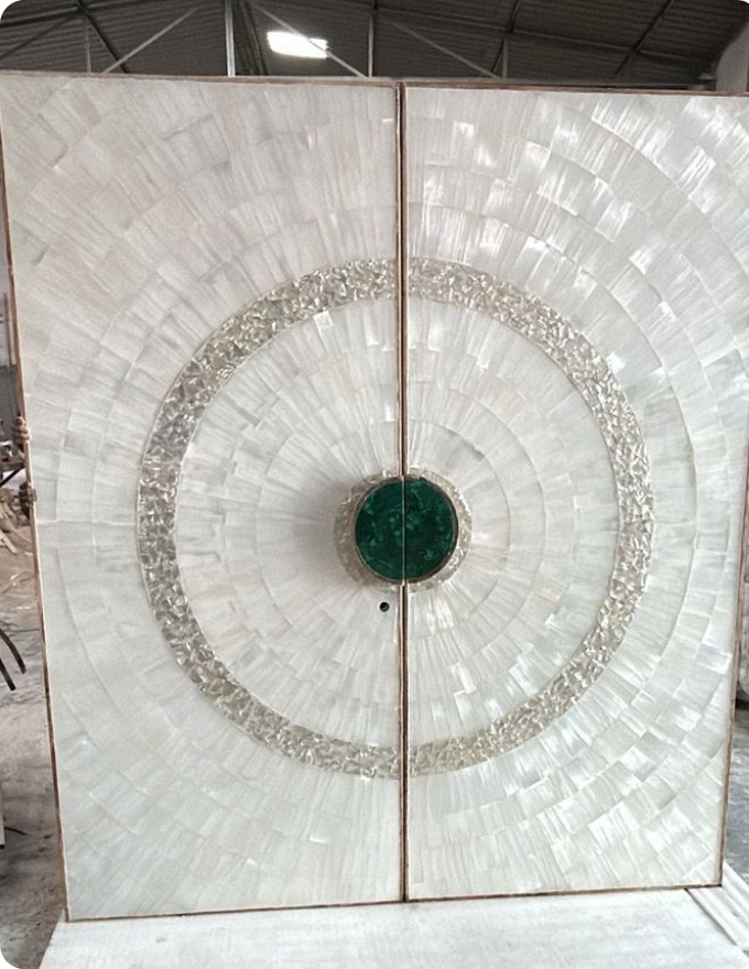 In addition to custom inlay work, we also offer premium Mother of Pearl sheets for decorative and architectural applications. Crafted from carefully selected shells, these sheets showcase natural iridescence, uniform detailing, and superior finish. Ideal for wall cladding, furniture surfaces, panels, and bespoke design elements, our Mother of Pearl sheets provide a versatile and elegant solution for luxury interiors.