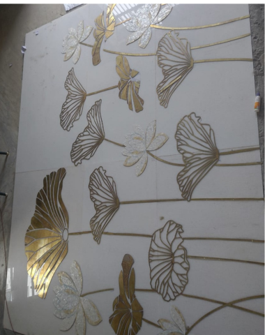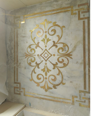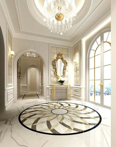 Our floor brass inlay work combines the richness of natural stone with the elegance of precision-cut brass. Carefully embedded into marble and stone surfaces, brass inlay adds contrast, definition, and a refined metallic accent. Each design is executed with exact alignment and flawless finishing, ensuring durability, balance, and long-lasting visual appeal—ideal for luxury residences, commercial spaces, and statement flooring designs.